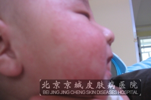 渗出型的婴儿湿疹大多比较容易出现在肥胖且有渗出性体质的婴儿身上,可表现为在婴儿的两颊出现境界不清的红斑,而且也可出现有针尖大的丘疹、丘疱疹以及水疱和渗液等症状。渗出型的婴儿湿疹在渗液干后可以出现黄色的痂皮,厚薄不一,并且当痂皮脱落之后还可以出现鲜红色糜烂面。