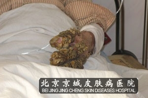 发生的躯干部位,皮疹表现是大而硬的,很像寻常疣。此外,常伴有掌跖角化、指甲变形、雀斑状痣及智力发育迟缓。有时患者会出现自觉瘙痒的症状。患者的病程发展是慢的。经年累月,不消退。