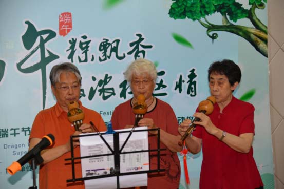 ▲北沙滩社区居民代表表演葫芦丝独奏