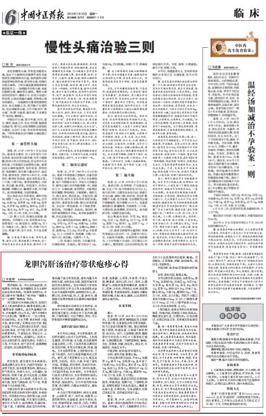 近日,北京京城皮肤医院中医科王连祥副主任医师撰写的学术文章——《龙胆泻肝汤治疗带状疱疹心得》,在《中国中医药报》临床版(2026年3月16日)正式刊发。