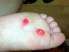 1. 跖疣。 它的主要的症状表现是,病患部位表面正常的皮纹会出现消失的现象,角质的增生主要呈现的是刺状的分布,还可见到黑点的出现。斑点多表现为是灰褐色,不仅仅限于受压的部位,两侧经过挤压以后,会出现比较明显的痛感。